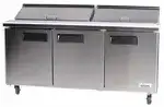 Sandwich Top Refrigerated Counter, two-section, 36"W, 10.01 cu. ft., (2) doors, (4) epoxy-coated wire shelves (2 per door), stainless steel top with opening for (8) 1/6 size pans, 10" cutting board, stainless steel exterior, aluminum interior, rear-mounted self-contained refrigeration, (pans furnished are 4" deep, tops will accommodate 6" deep pans) R290 Hydrocarbon refrigerant, 1/6 HP, cULus, UL EPH Classified, UL-Sanitation
