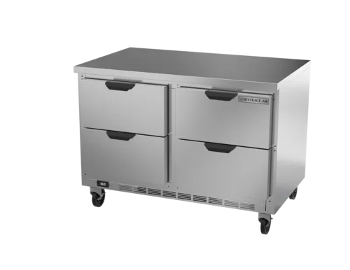 Worktop Refrigerator, two-section, 35-1/2" working height, 48"W, 11.82 cu. ft., with (4) drawers, stainless steel exterior & top, flat top, aluminum interior, rear-mounted self-contained refrigeration, R290 Hydrocarbon refrigerant, 1/6 HP, cULus, UL EPH Classified, UL-Sanitation