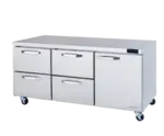 Undercounter Refrigerator, three-section, 72-3/8"W, 20.2 cu. ft. capacity, rear-mounted self-contained refrigeration, 33° F to 39° F temperature range, (4) drawers, metal drawer handles, (1) self-closing swing door (on right), metal door handle, open door alarm, (2) adjustable wire shelves, self-diagnostic digital temperature control & monitor system, stainless stainless steel interior & exterior, (4) 4" swivel casters (2 braked), R290 Hydrocarbon refrigerant, 1/4 HP, 115v/60/1-ph, 5.2 amps, cord with NEMA 5-15P, cETLus, ETL-Sanitation