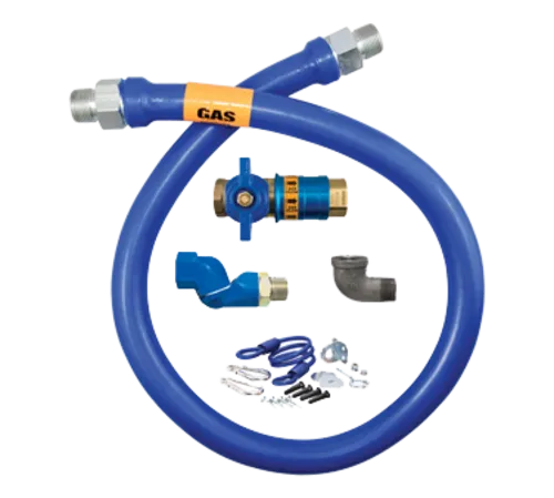 Dormont Blue Hose™ Moveable Gas Connector Kit, 3/4" inside dia., 72" long, covered with stainless steel braid, coated with blue antimicrobial PVC, (1) Safety Quik® QDV, (1) Swivel MAX®, and coiled restraining cable with hardware, 130,000 BTU/hr minimum flow capacity, limited lifetime warranty