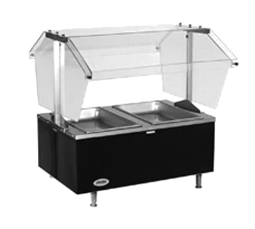 Deluxe Service Mate, Counter Top Buffet Hot Food Unit, electric, 63-1/2" L, (4) 12" x 20"Hot food wells, stainless steel top, steel wrapper/laminated woodgrain vinyl finish, clear double sided sneeze guard, adjustable feet, 208/60/1-ph, 3000w, 12.5 amps, NSF, cULus