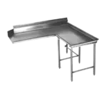 Clean Dishtable, corner design, 60" machine to corner, 60" corner to end, 30" working depth, 43-1/2"H overall, left-to-right operation, 16/430 stainless steel top, 8"H backsplash, raised rolled edges on front & side, galvanized legs & crossbracing, adjustable metal feet, NSF