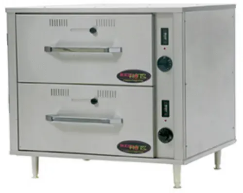 RedHots® Warming Drawers, free standing, (2) drawers, holds (2) 12" x 20" x 6" pans, recessed individual thermostats with indicator lights, stainless steel construction, 4" adjustable legs with non-marking feet, 900w, 120v/60/1-ph, 7.5 amps, NEMA 5-15P, NSF, UL (FLYER)