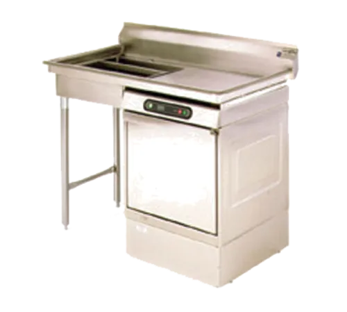 Soiled Dishtable, undercounter, dishwasher on right, 60"W x 27-1/2"D x 43-1/2"H overall, 16/304 stainless steel top, 20" x 20" x 5" pre-rinse sink includes basket drain with removable crumb cup, 8"H backsplash, single deck mount faucet hole for pre-rinse, raised rolled rims on front & sides, accommodates 24" (front-to-back) undercounter dishwasher, galvanized legs & crossrails with adjustable plastic bullet feet, NSF (FLYER)