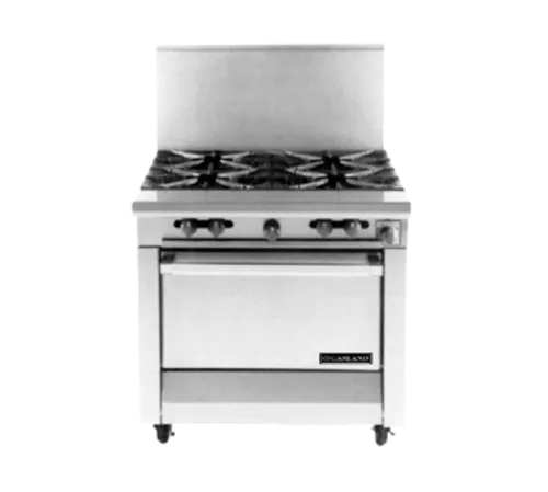 Master Series Heavy Duty Range, gas, 34", (4) 35,000 BTU two-piece Starfire burners, removable heads, storage base, drip tray, aluminized steel interior, stainless steel front & sides, 6" chrome steel adjustable legs, 140,000 BTU, CSA Flame, CSA Star, NSF (Garland)