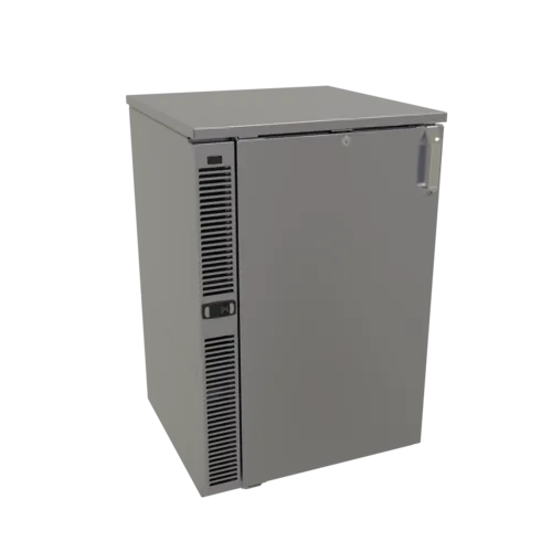 Cooler, one zone, side serviced, bar profile, 24"W, one-section, 17.5"W door opening, self-contained refrigeration, LED interior lighting, front venting, stainless steel interior, R290 Hydrocarbon refrigerant, 1/8 HP, NSF Standard 7 for open food storage, cETLus, ETL-Sanitation, ETL Verified