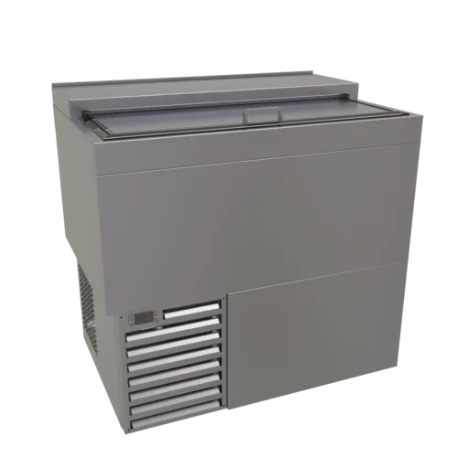 Flat Top Bottle Cooler, deep well, 36"W x 24"D, self-contained refrigeration, 34°F (1°C) to 40°F (4°C) temperature range, (1) top sliding door with lock, (2) vertical wire partitions, automatic defrost cycle & condensate evaporator, stainless steel exterior, interior & top, R290 refrigerant, 1/6 HP, cETLus, ETL-Sanitation, ETL Verified