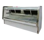 Curved Glass Deli Meat & Cheese Service Case, 74"W, single duty, endless design look, full length gravity coil system, (1) adjustable mezzanine shelf, black exterior & white interior (mirrored stainless inside ends standard), designed for remote refrigeration, R448A expansion valve included, remote condensing units & other hook ups are not included, LED lighting, -ph, 2.2 amps, 2100 BTU, cULus, UL EPH Classified, UL-Sanitation