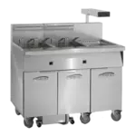 Fryer, electric, floor model. (2) battery, 50 lb. capacity each, immersed elements, built-in space saver filter system, 5.5 GPM roller pump, computer controls, includes: joiner strips & filter starter kit, stainless steel frypot, front & sides, casters, 1/3 HP, cETLus, CSA Flame, CSA Star, CSA-Sanitation, CE
