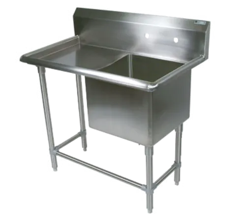 Pro-Bowl Sink, 1-compartment, 44-3/16"W x 25-1/2"D x 44-1/16"H overall size, (1) 16"W x 20" front-to-back x 14" deep compartment, (1) 24" left drainboard, 10"H boxed backsplash with 45° top & 2" return, (1) set of splash mount faucet holes with 8" centers, 3-1/2" die-stamped drain opening, 16/300 stainless steel construction, stainless steel legs, adjustable front & side bracing, adjustable bullet feet, NSF, CSA-Sanitation, KD