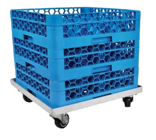 Glass Rack Dolly, open frame design, single stack, for 20" x 20" racks, all aluminum welded construction, 3" swivel plate casters (Available in Effingham and Nevada)