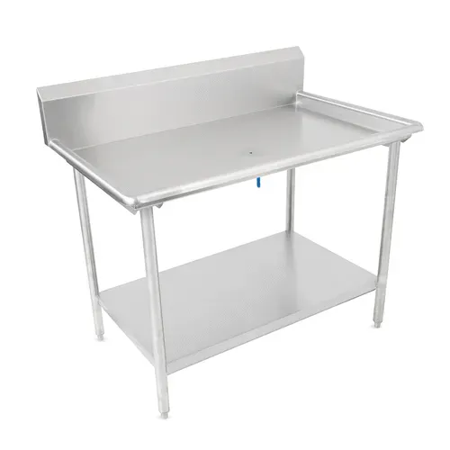 Sorting Table, 48-7/8"W x 30-3/8"D, 16/300 stainless steel top with 10" backsplash, 2-1/4" rolled edge on front and sides, stainless steel legs & undershelf, adjustable bullet feet, welded setup, NSF