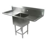 E-Series Sink, 1-compartment, 36-1/2"W x 25-1/2"D x 43-3/4"H overall size, (1) 16"W x 20" front-to-back x 12" deep compartment, (1) 18" left drainboard, 9-3/4"H boxed backsplash with 45° top and 2" return, (1) set of splash mount faucet holes with 8" centers, 3-1/2" die-stamped drain openings, 18/300 stainless steel, galvanized legs & gussets, adjustable plastic bullet feet, NSF, CSA-Sanitation (Available in Effingham and Nevada)