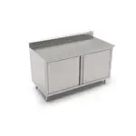 Work Table, cabinet base with hinged doors, 48"W x 24"D, 14/300 stainless steel top with 5" backsplash, Stallion Safety Edge front, 90° turndown on sides, stainless steel base, undershelf, & 1" adjustable bullet feet, all welded set-up, NSF