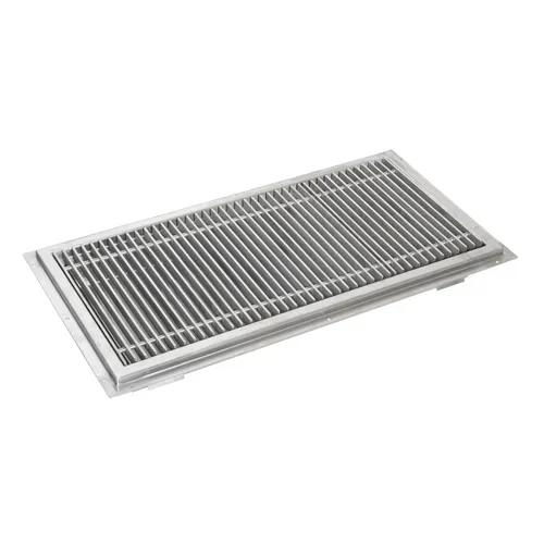 Floor Trough, 36"W x 24"D, subway-style stainless steel grating, 4" deep all-welded drain pan with built-in pitch, accommodates up to a 4" diameter pipe, includes stainless steel removable perforated strainer, 14/300 stainless steel