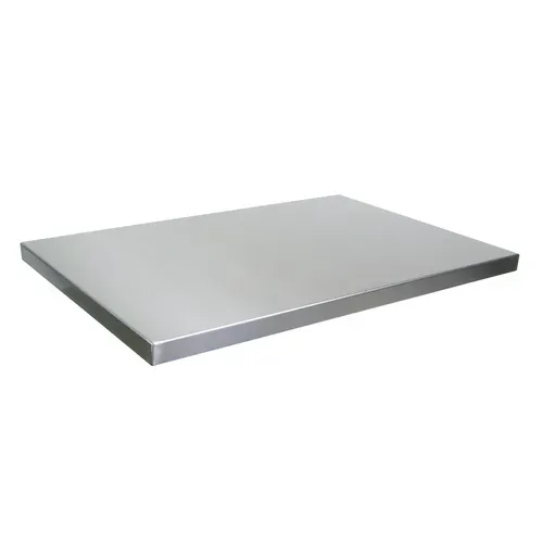 Countertop, 120"W x 36"D x 1-1/2" thick, 16/300 stainless steel with #4 polish, 1-3/8" thick premium particle board with melamine backing underlayment, NSF