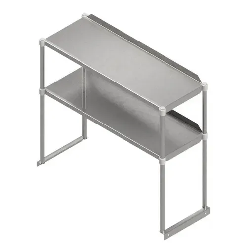 Overshelf, double, 36"W x 12"D, 16/300 stainless steel with 1-1/2" upturn on back, mounted 18" above table top, 12" between shelves, 1" stainless steel post, KD, NSF
