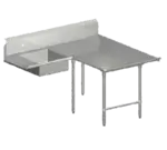 Pro-Bowl Soiled Dishtable, landing design, 70" machine to corner, 84" corner to end, 44"H overall size, L-shaped with 10" landing shelf, right-to-left operation, (1) 20"W x 20" front-to-back x 8" deep pre-rinse sink bowl, 10"H boxed backsplash with 45° top & 2" return, (1) set of splash mount faucet holes with 8" centers, 2-1/4"H rolled edge, 16/300 stainless steel top, stainless steel legs, bracing, & adjustable bullet feet, NSF