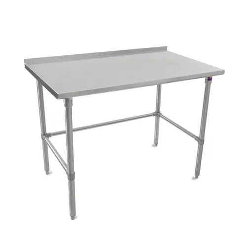 Work Table, 120"W x 24"D, 16/300 stainless steel top with 1-1/2"H rear up-turn, with Stallion Safety Edge front, 90° turndown on sides, box channel understructure with sound deadening tape, stainless steel legs, side & rear adjustable bracing, adjustable bullet feet, NSF, CSA-Sanitation, KD (Available in Effingham and Nevada)
