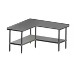 Work Table, L-shaped, 60"W x 60"D x 40-3/4"H overall size, 24" working depth, 16/300 stainless steel top with 5" backsplash, with Stallion Safety Edge front, 90° turndown on sides, box channel understructure with sound deadening tape, stainless steel legs, side & rear adjustable bracing, adjustable bullet feet, KD, NSF
