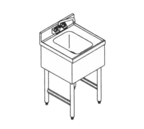 Sinkronization 19 Underbar Hand Sink Unit, 18"W x 19"D, 304 stainless steel top, apron & ends, (1) 10" wide x 14" front-to-back x 9-3/4" deep tank with splash mount low-lead faucet, basket drain assembly, 6"H backsplash, galvanized legs & crossrails with corrosion-resistant paint, adjustable plastic feet, NSF