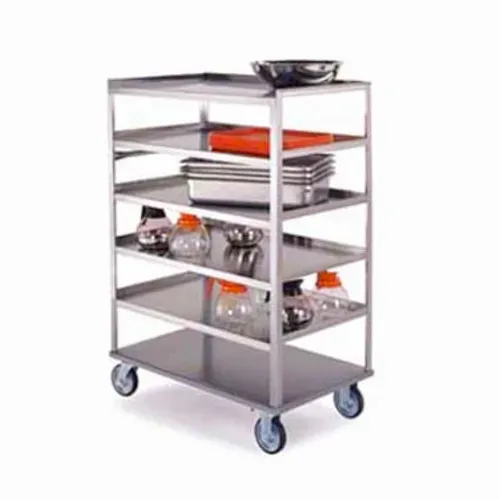 Open Tray Truck, (6) shelf, shelf size 35"W x 21"D, (3) edges up, (1) down, 7-1/8" clearance, stainless steel with push handle, 500 lb. capacity, Made in USA
