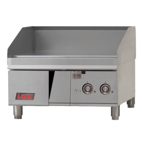 LG Heavy Duty Griddle, electric, countertop, 24" W x 23" D cooking surface, 1" thick polished steel griddle plate, 200°-550° F snap-action thermostat, 6000W elements every 12", welded steel frame with stainless steel exterior, 5" tapered wrap-around splash guard, 8qt grease drawer, 4" stainless steel legs with 1-5/8" adjustment, NSF, cETLus, Made in USA