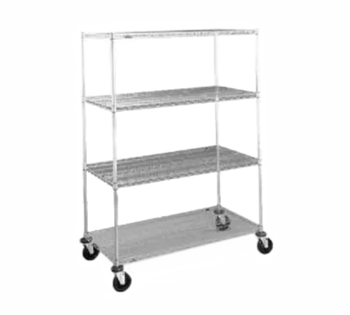 Super Erecta® Stem Caster Cart, wire, 48"W x 21"D x 69"H, (4) shelves, (4) posts, plastic split sleeves, donut bumper, Super Erecta® Brite Shelves & chrome plated posts (2) swivel (2) brake resilient rubber casters, 600 lb. capacity, NSF