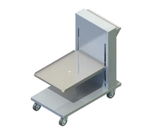 Tray & Sheet Pan Dispenser, cantilever style, mobile tray & silverware dispensers, single frame & body, (1) independent carrier & dispensing mechanism, 18" X 26" sheet pans capacity, up to 7(5) pans, adjustment for various tray or pan sizes, stainless steel, 4" double ball bearing casters