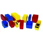 Bin, stacking or hanging, 16-1/2"W x 14-3/4"L x 7"H, front/back/side grips, anti-slide lock, (3) divider slots, rear hanger, molded-in label holder, polypropylene, Bin offered in a variety of colors, Made in USA, (Must be purchased in multiple of 6)