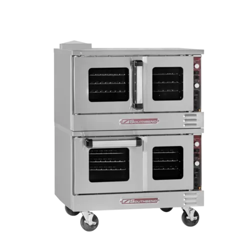 TruVection Convection Oven, gas, low-profile, double-deck, electronic ignition, 150-550°F solid state thermostatic controls, 60 minute mechanical cook timer, oven interior light, cool down fan, includes (3) racks per oven, porcelain oven interior, stainless steel door handle, front, sides, top & 6" legs, (2) 1/2 HP, 104,000 BTU, CSA, NSF